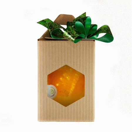 Med o hmotnosti 900 g uložíme do dárkové krabičky a doplníme stuhou.