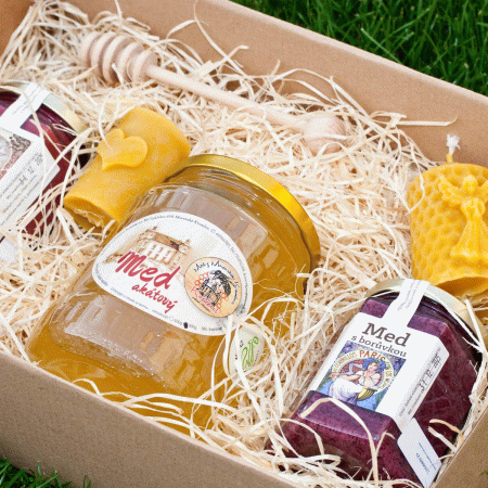 Dárkové balení našeho akátového medu s pláství potěší každého, kdo ocení přírodní produkty a jedineč...
