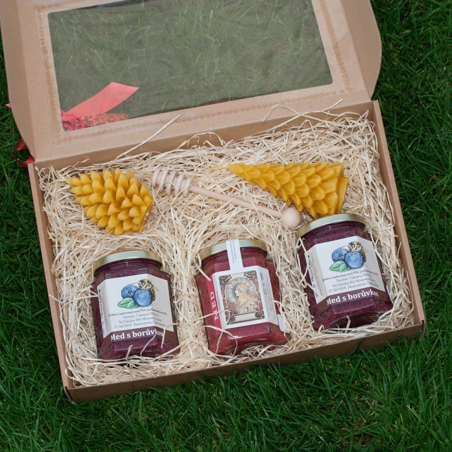 Součástí balení jsou také dvě střední svíčky z pravého včelího vosku, které provoní váš domov, a dřevěná naběračka, bez které by to nebylo ono. Celé balení působí elegantně, voňavě a přírodně – ideální dárek pro milovníky medu, rodinu nebo přátele, kteří si zaslouží něco sladkého a opravdového.